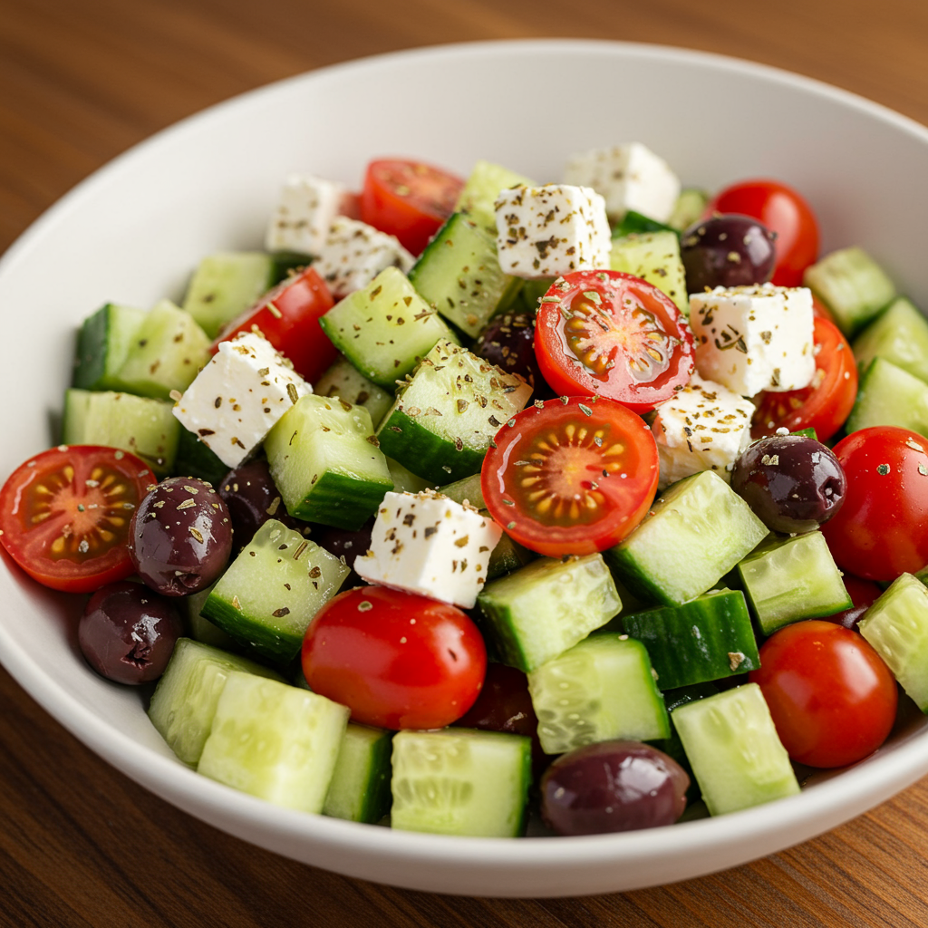 A Mediterranean-inspired salad with briny feta and juicy tomatoes.