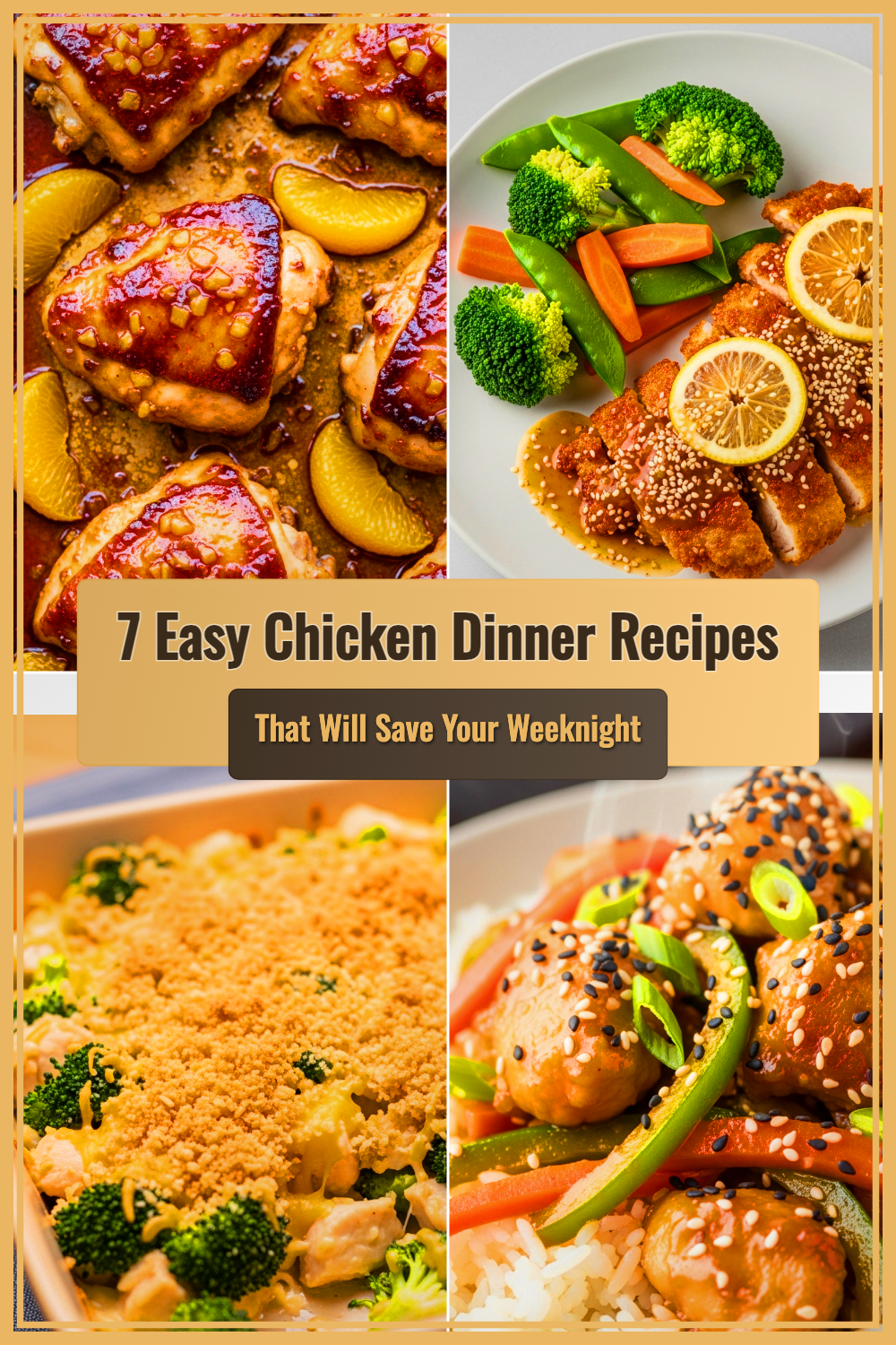 There you have itâseven easy chicken dinner recipes that are simple, healthy, and totally delicious. With just a handful of ingredients, you can whip up a meal thatâs good for your body and your taste buds. Chicken is packed with protein, low in fat, and loaded with nutrients that support your brain, muscles, and heart. Plus, these recipes are so easy, youâll actually look forward to making dinnerâeven on your busiest nights.