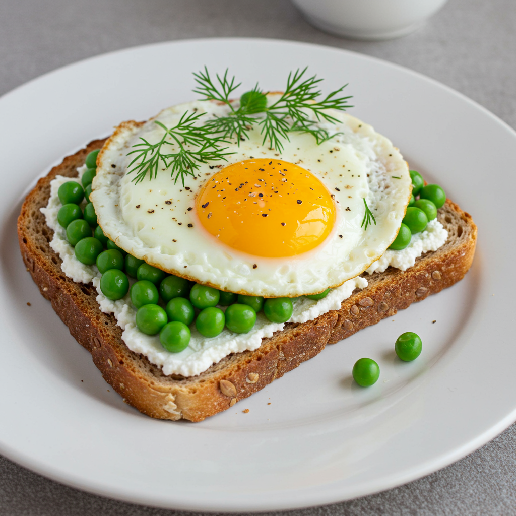 2. Simple Goat Cheese & Egg Toasts with Fresh Peas and Dill