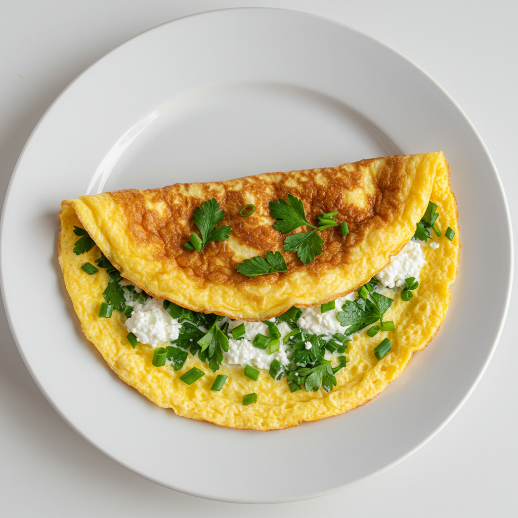 A fluffy omelet with tangy goat cheese and garden-fresh herbs.