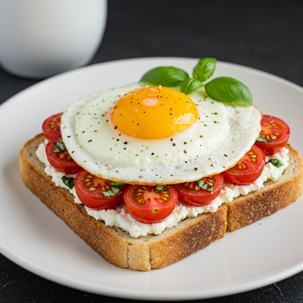 Juicy tomatoes, creamy goat cheese, and fresh basil—breakfast doesn’t get better!
