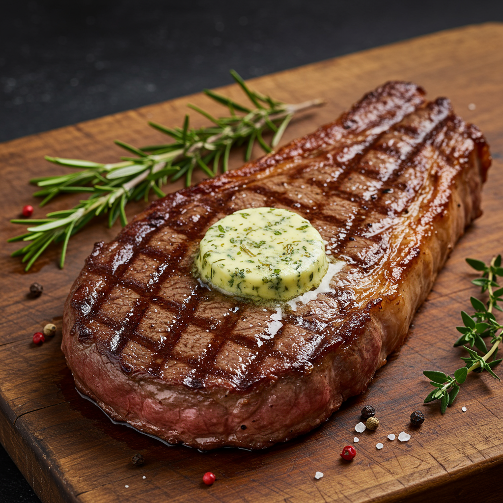 2. Perfect Grilled Strip Steaks with Herb Butter