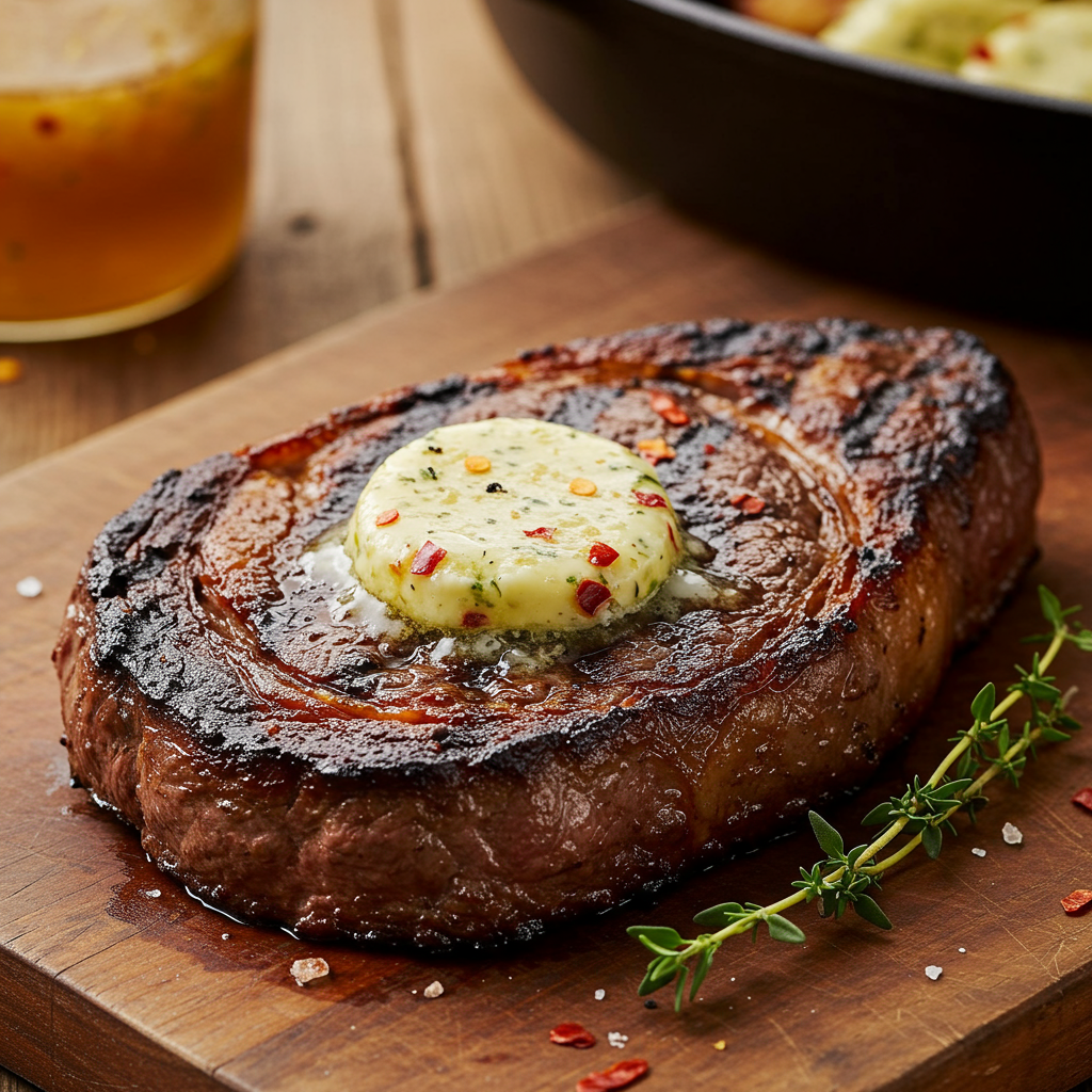 Master the two-zone grilling method with these perfectly seasoned strip steaks topped with aromatic herb butter. This technique ensures a beautiful sear while maintaining juicy interiors.