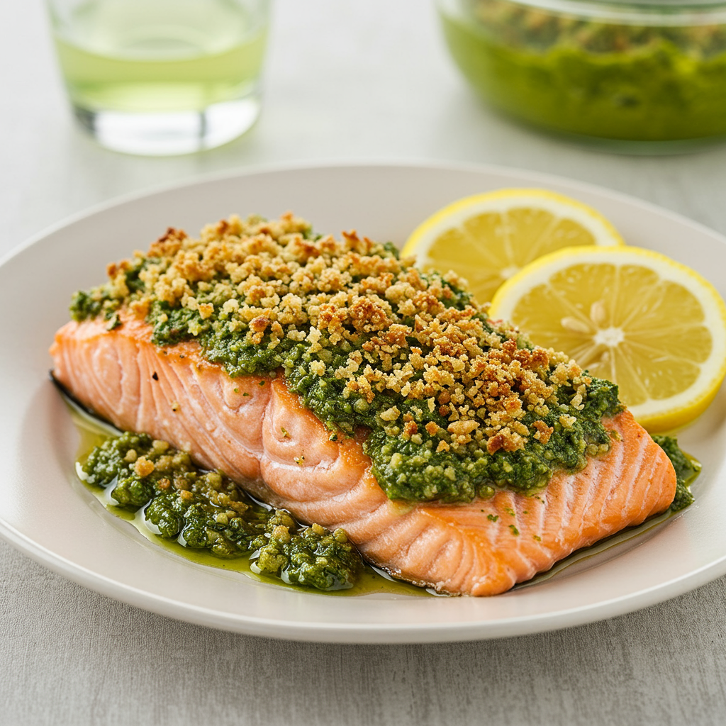 Why it’s aesthetic: Pink salmon, green pesto, and golden breadcrumbs look like restaurant art on your plate.