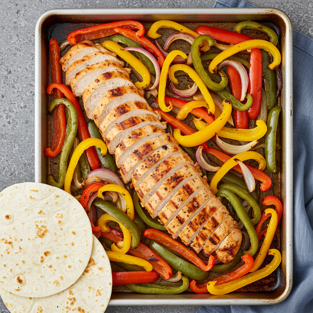 Why it’s aesthetic: Rainbow peppers and juicy chicken, all roasted on one pan for a colorful meal.