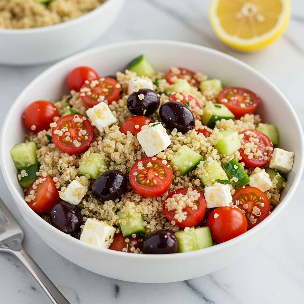Why it’s aesthetic: Bright veggies, fluffy quinoa, and tangy feta make this salad pop.