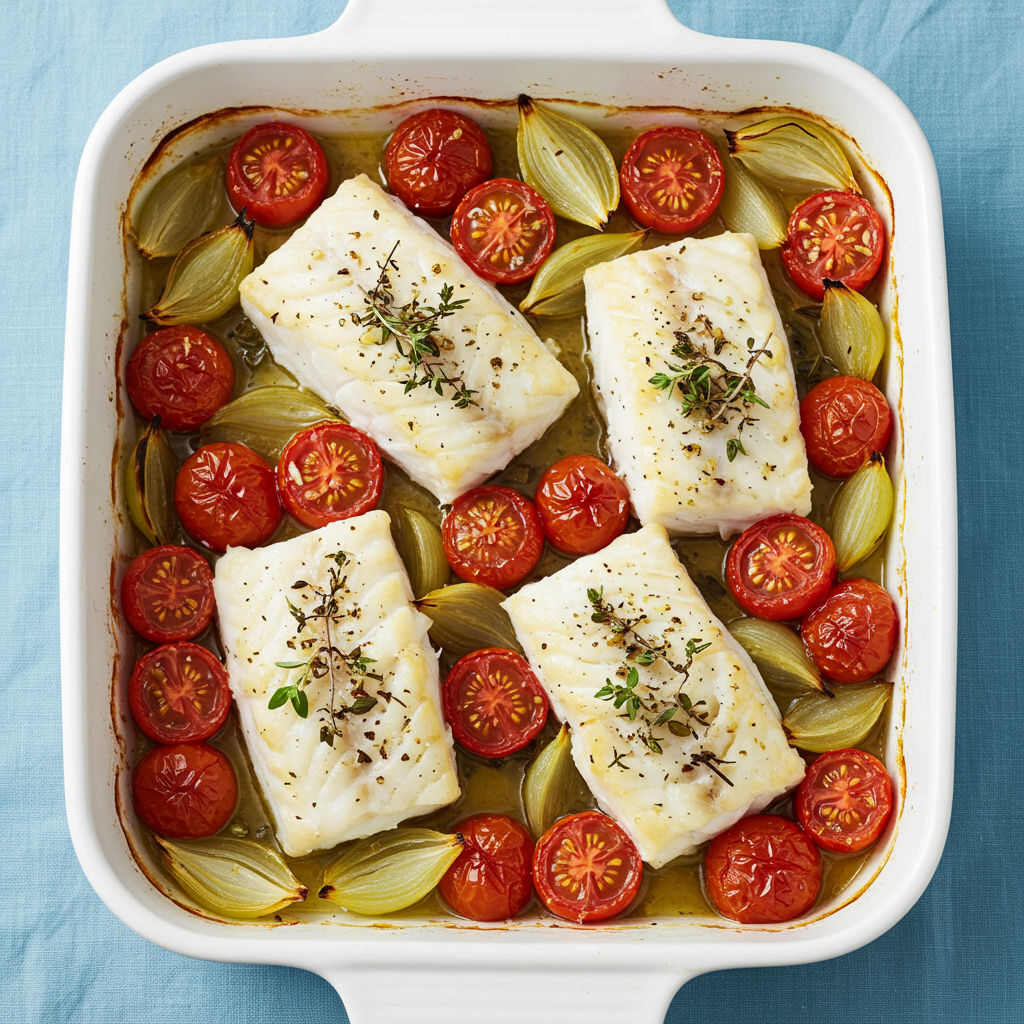 Why it’s aesthetic: White fish fillets nestled in a bed of red tomatoes and golden onions—so pretty!