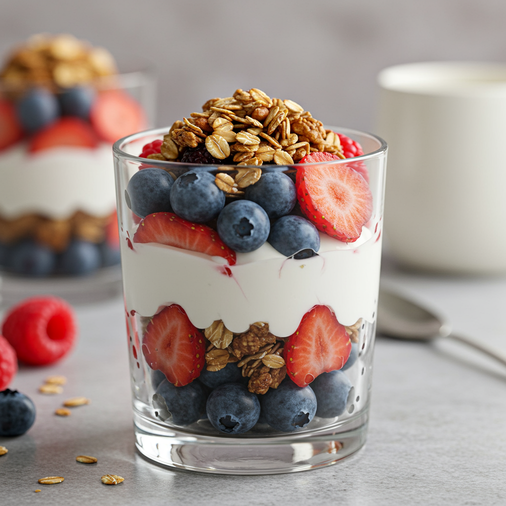 Layering makes breakfast feel special! Yogurt delivers protein and calcium, fruit adds vitamins, and oats bring the fiber.