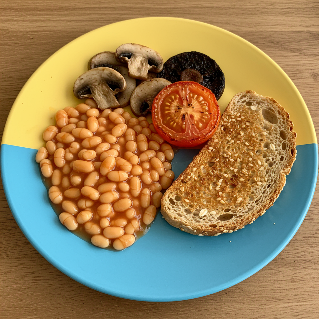 A mini āEnglish breakfastā with beans, mushrooms, and toast is filling and fun. Skip the pork sausageāuse turkey or veggie sausage if you like.