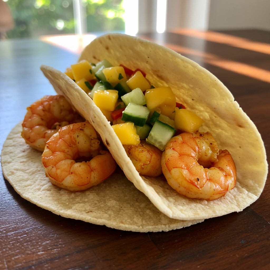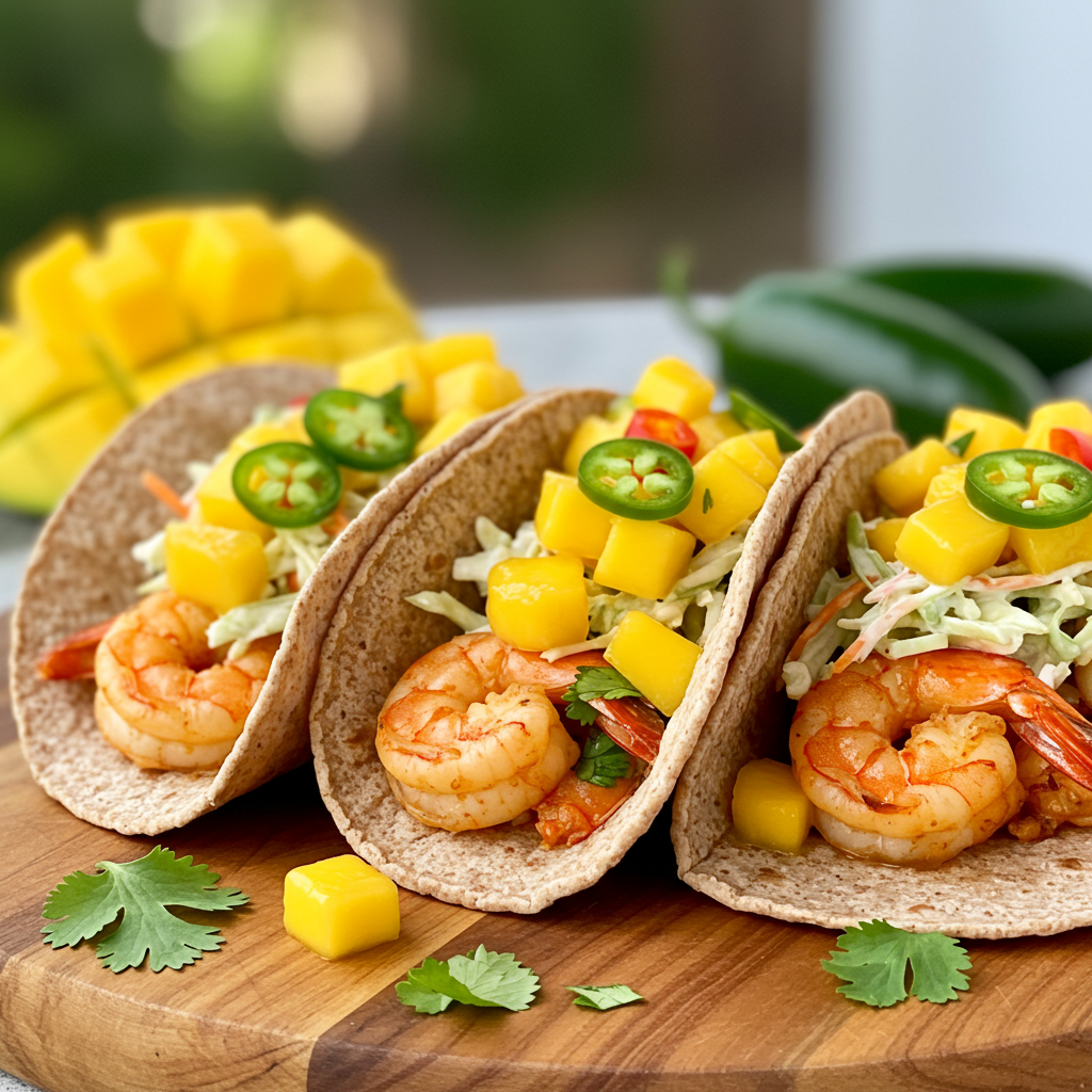 - Assemble: Fill tortillas with slaw shrimp and mango salsa.