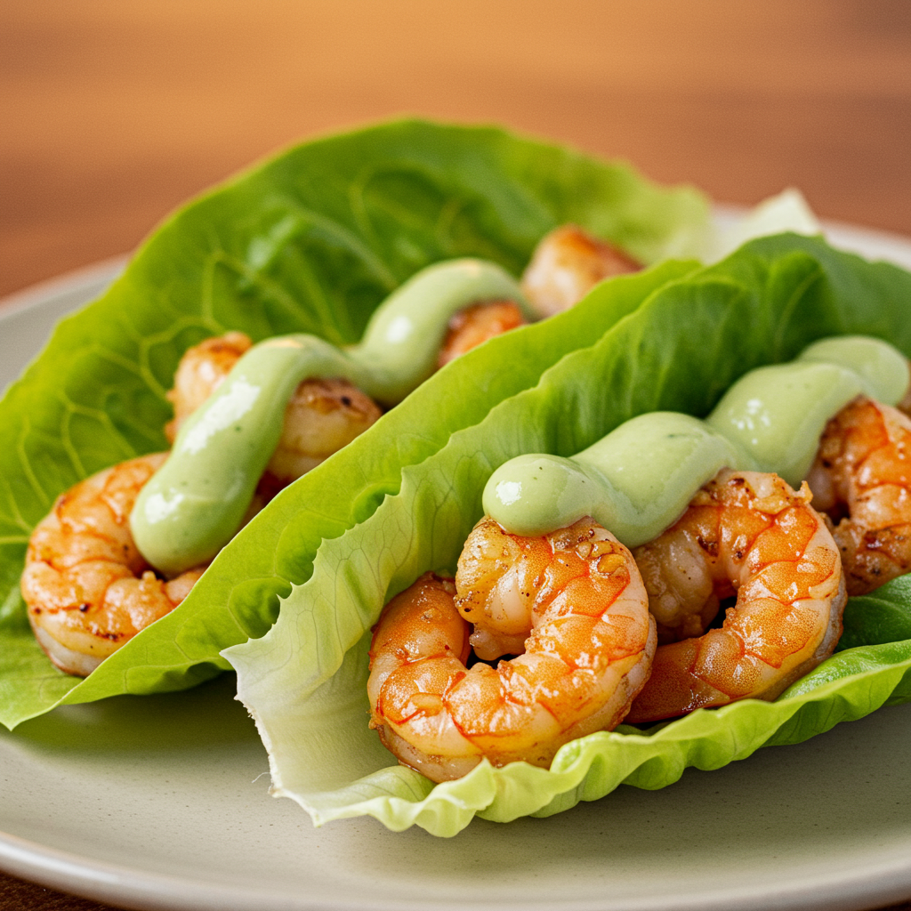 - Serve: Fill lettuce wraps with shrimp and drizzle with crema.