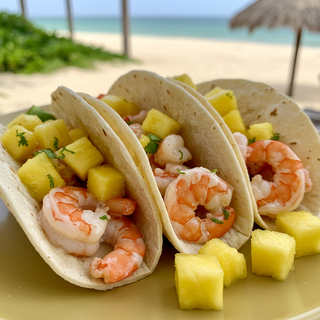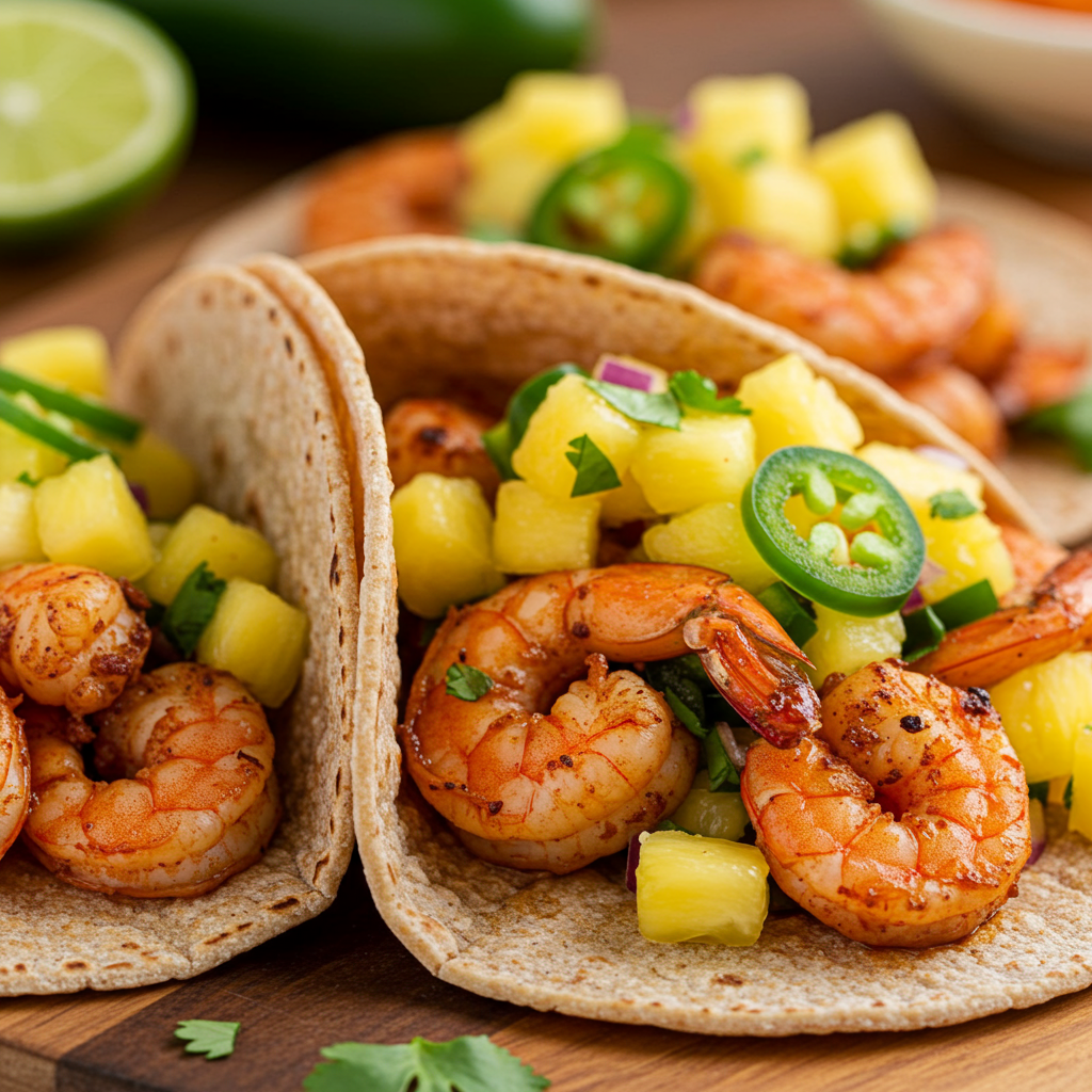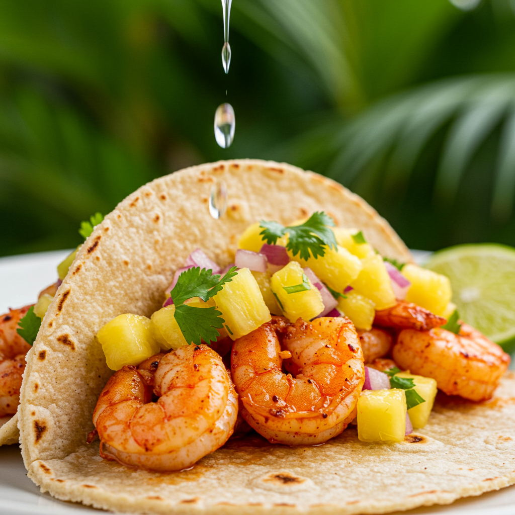 - Assemble tacos: Fill tortillas with shrimp and pineapple salsa. Top with cilantro.