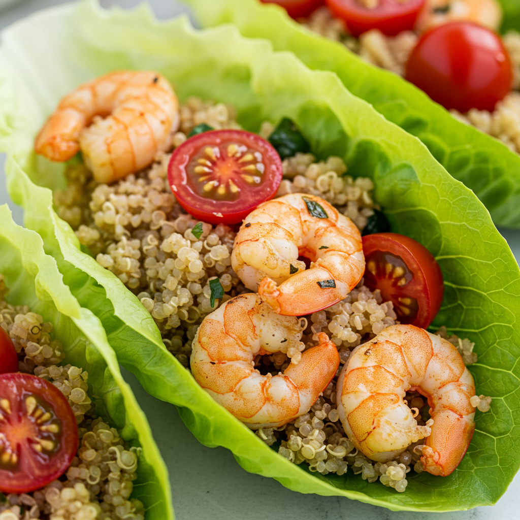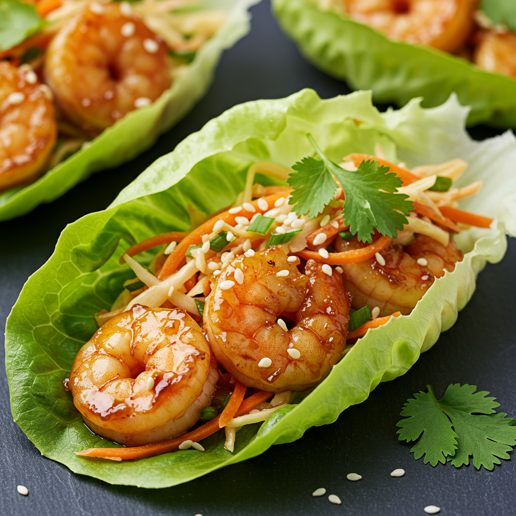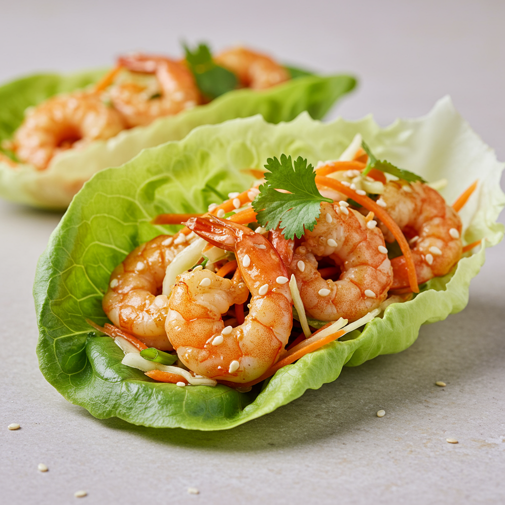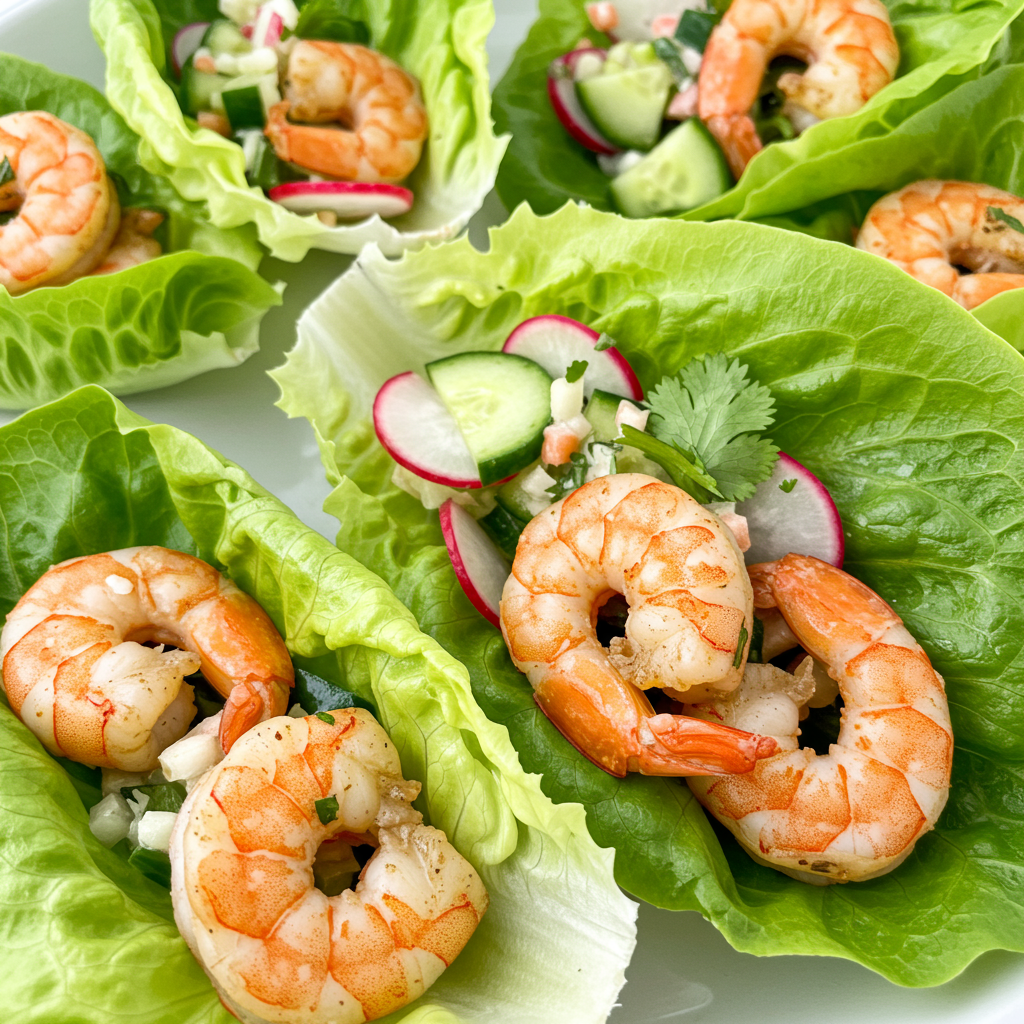 - Assemble tacos: Fill lettuce wraps with shrimp and slaw.