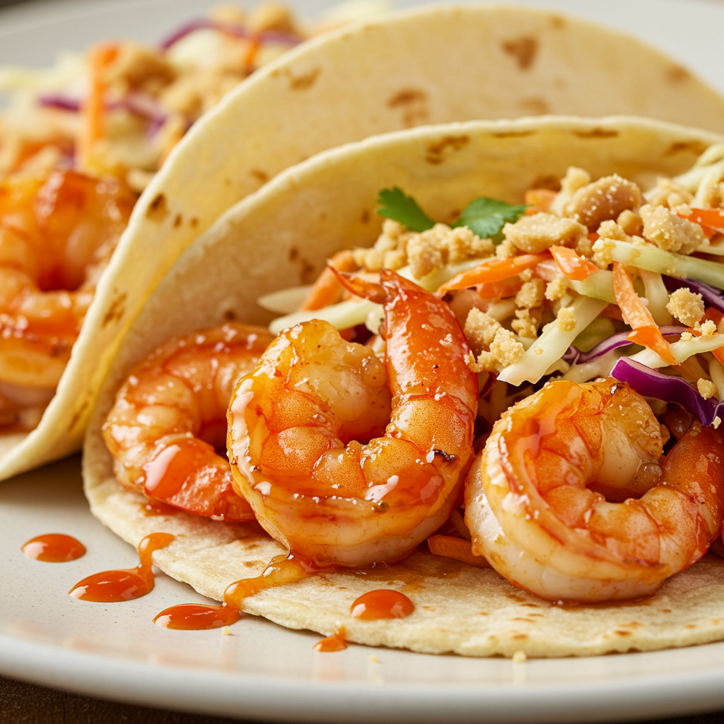 26. Honey Sriracha Shrimp Tacos with Peanut Slaw