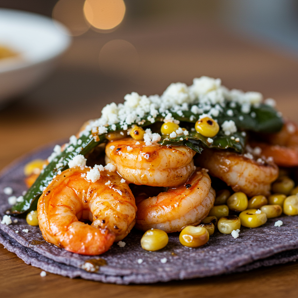 29. Poblano & Corn Shrimp Tacos with Cotija