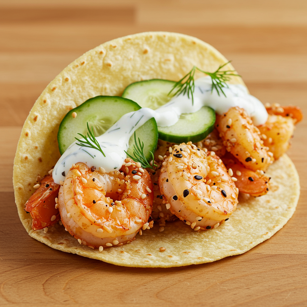 30. Everything Bagel Shrimp Tacos with Dill Cream
