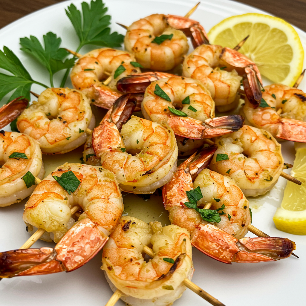- Skewer the shrimp: Thread shrimp onto skewers (if using wooden skewers soak them in water first).