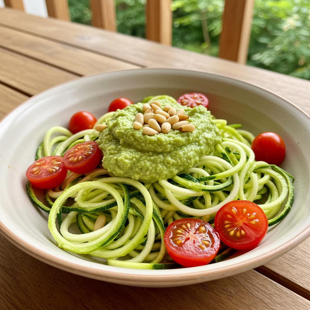 - Toss with zucchini noodles: Gently mix the pesto with the zucchini noodles.