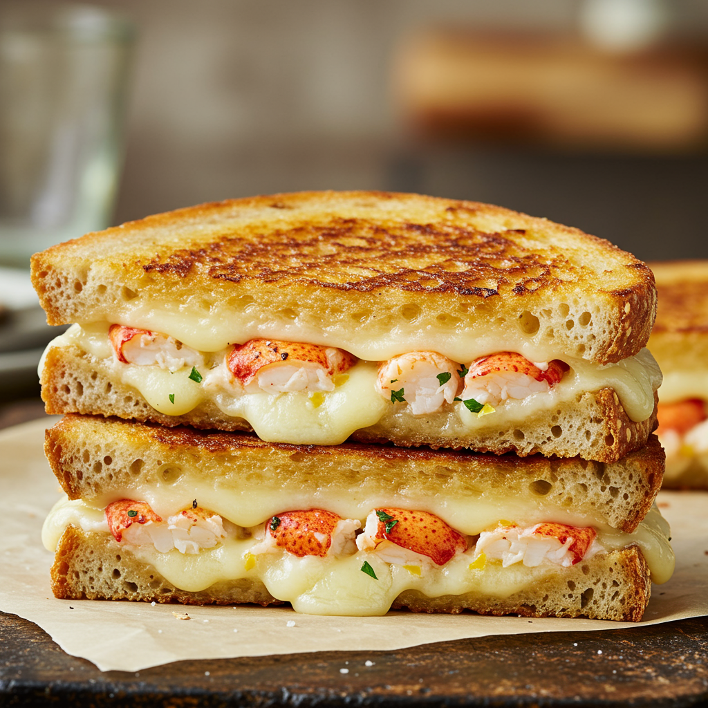 - Assemble: Butter bread slices. Spread mustard on inside. Layer with Gruyère, lobster mixture, and more cheese.