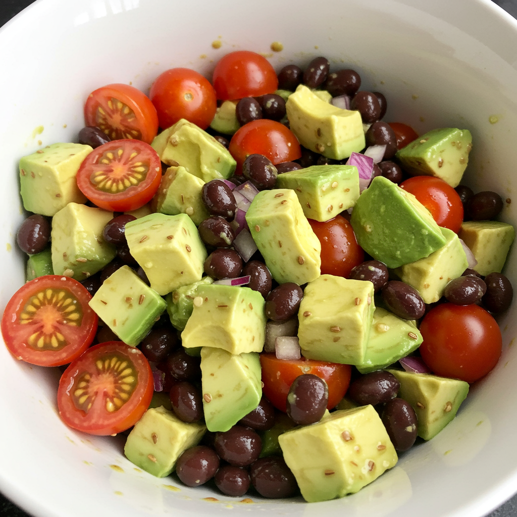 - Gently toss avocados black beans tomatoes and red onion in a bowl.