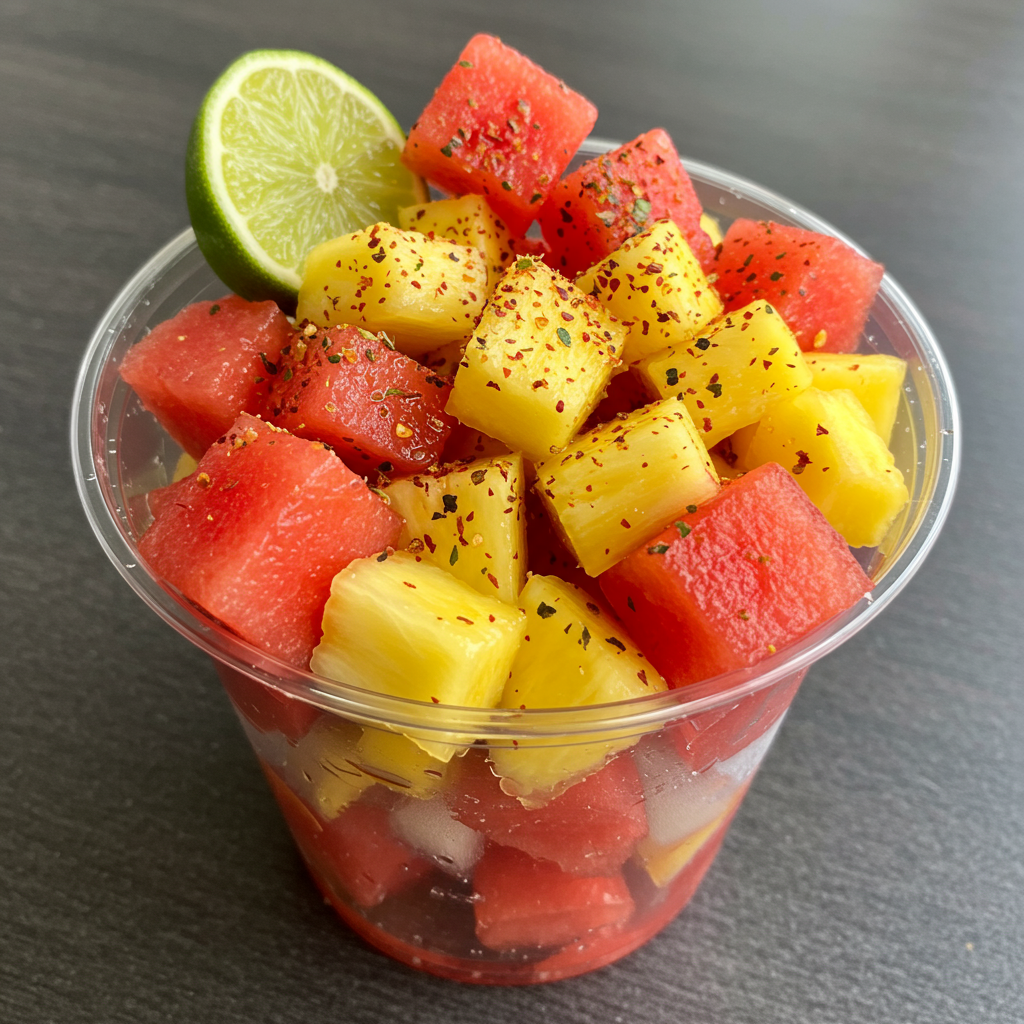 A sweet spicy and refreshing mix of tropical fruits with a chili-lime twist.