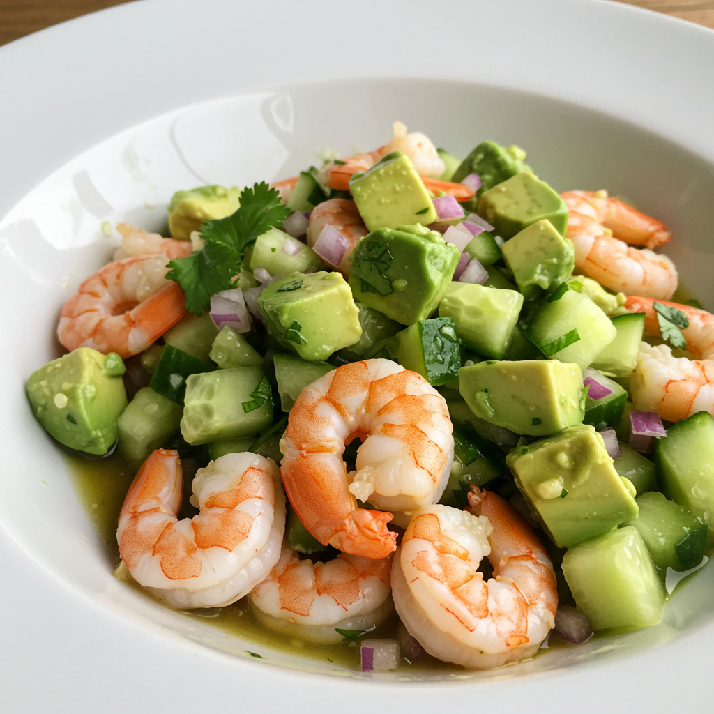 - Combine shrimp avocado cucumber red onion and jalapeño in a bowl.