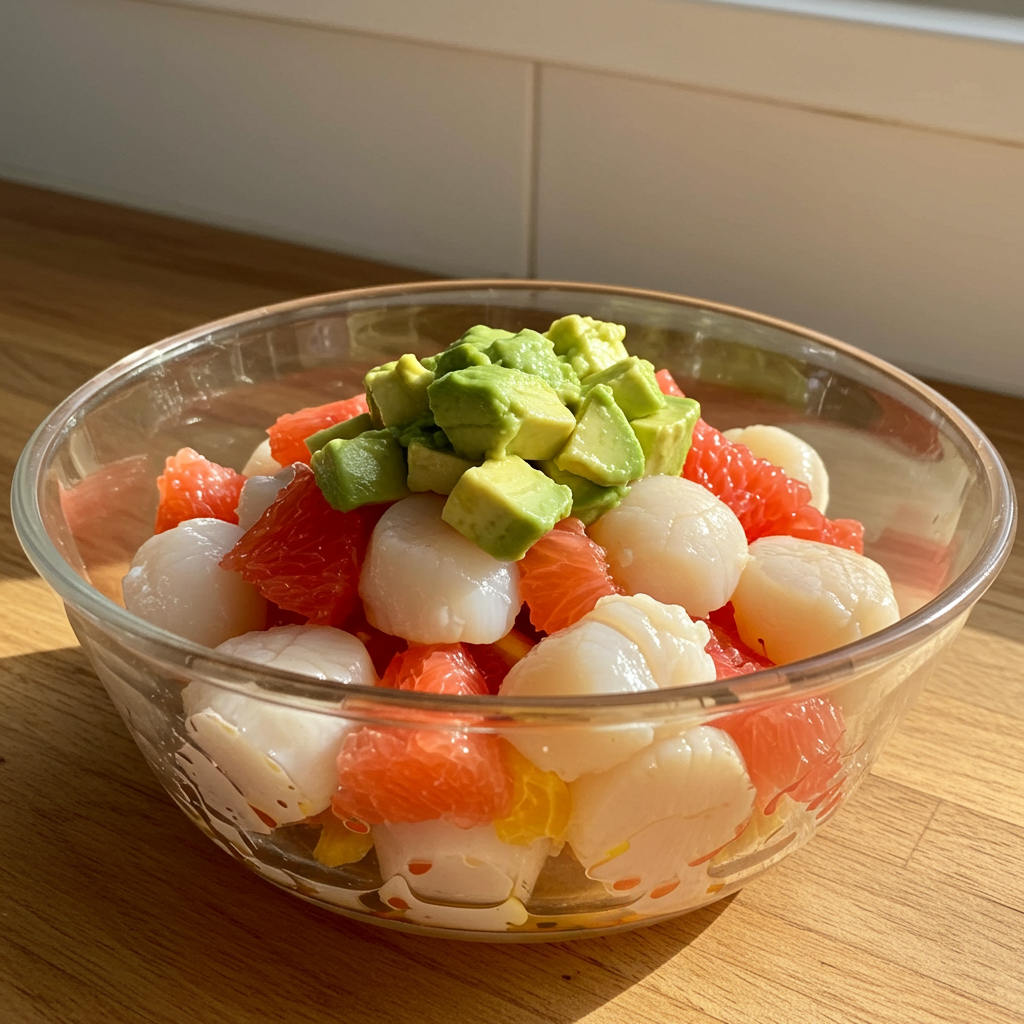 A stunning no-cook dish that combines sweet scallops with bright citrus flavors—perfect for a refreshing poolside appetizer.
