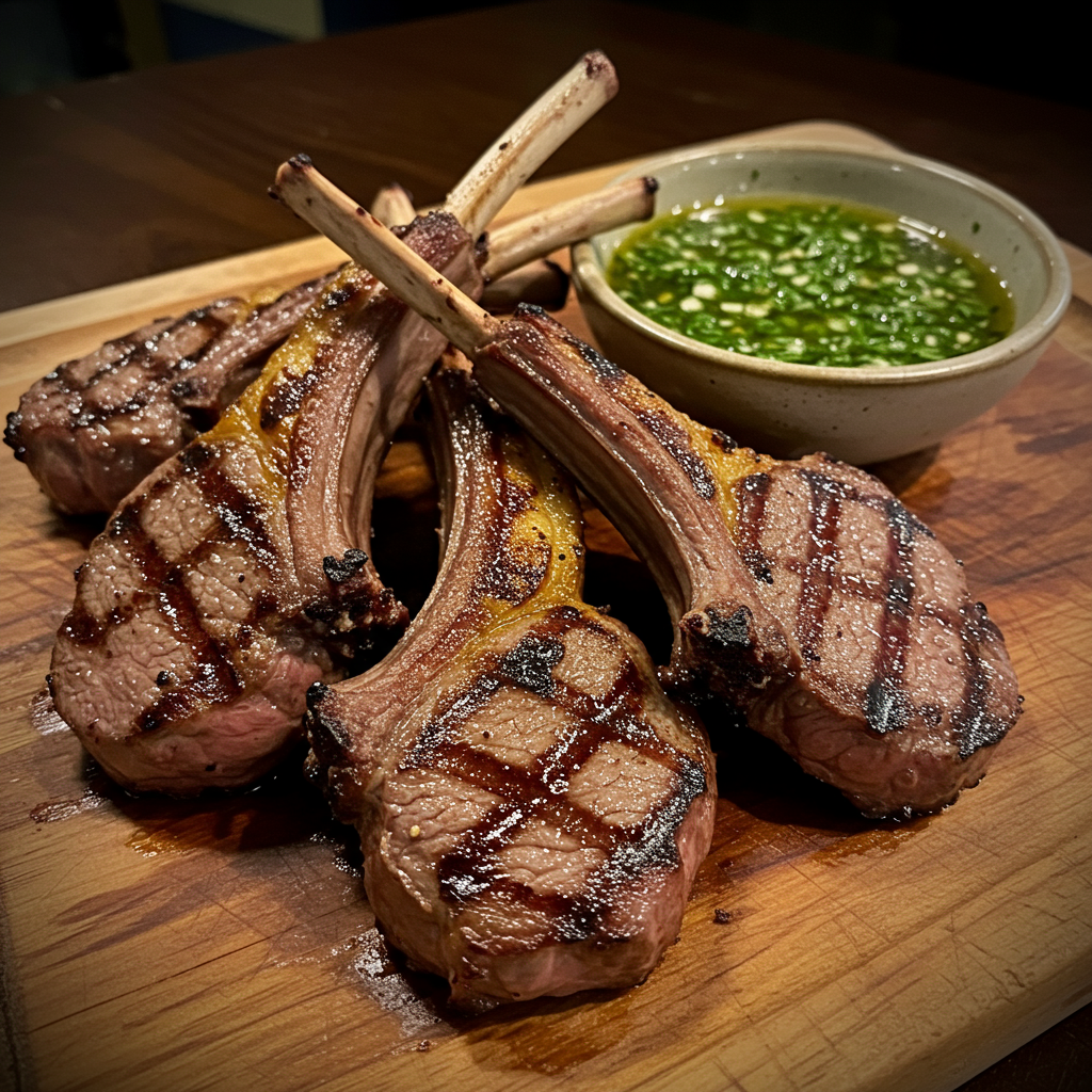 32. Grilled Lamb Chops with Mint Chimichurri