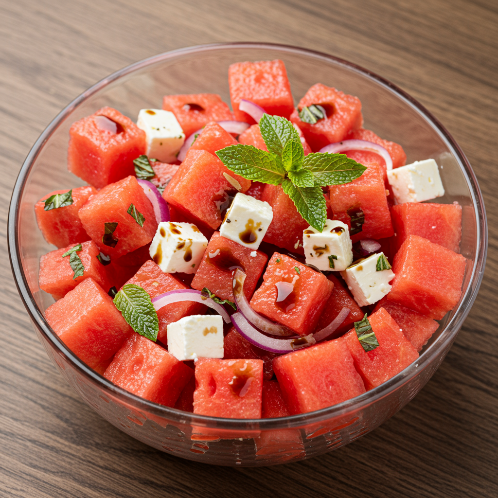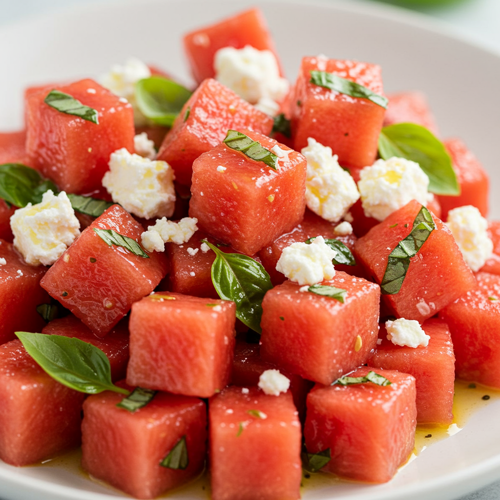 This salad is a harmonious blend of juicy watermelon creamy feta fresh herbs and zesty dressings. The sweetness of the watermelon balances the saltiness of the feta while herbs like mint or basil add a refreshing kick. Plus it’s quick to make visually stunning and packed with nutrients like vitamins A and C antioxidants and hydration-boosting watermelon.